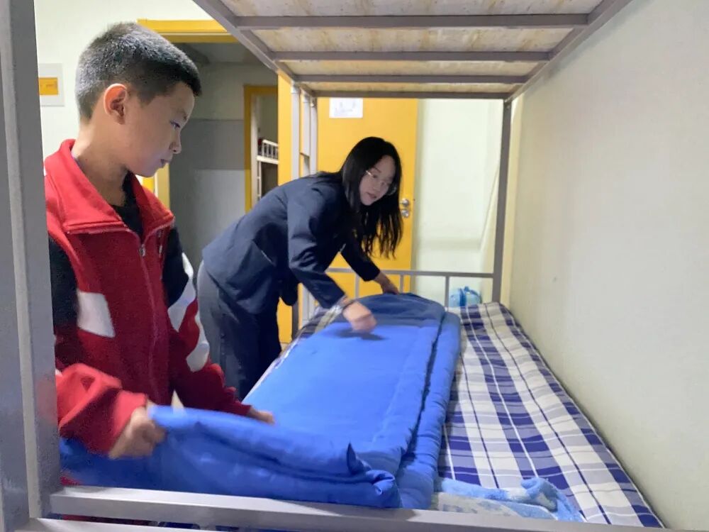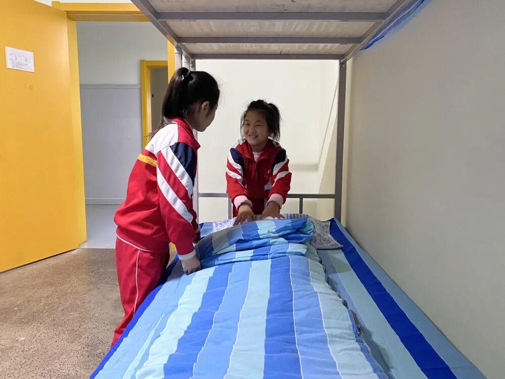 经过师生的共同努力,住宿环境焕然一新,窗明几净,物品整洁,被褥整齐,摆放规范。同学们开心的表示会继续保持下去,爱护这个温馨的小家。