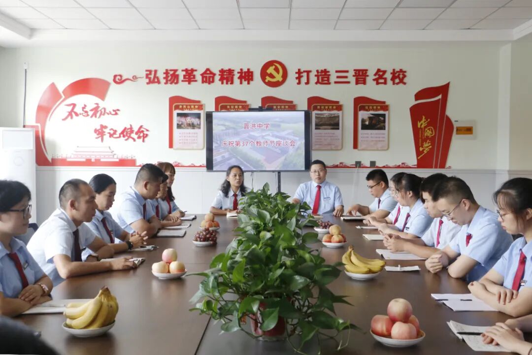 9月7日上午,晋洪中学组织了庆祝第37个教师节座谈会。北京汉德三维集团副总经理郭天梁,晋洪中学董事长李红艳及各分校领导、代表教师参加本次会议。